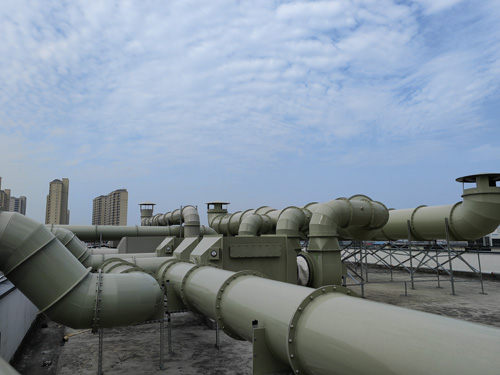 實驗報告室廢氣減排 → 親水性炭濾出器 → 引鼓風機 → 減排